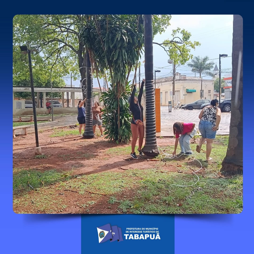 A Prefeitura de Tabapuã, por meio do Fundo Social de Solidariedade, com o apoio da Secretaria Municipal de Cultura e Turismo, da Secretaria Municipal de Assistência Social e de voluntários, deu início às decorações natalinas na Praça Cesar Carvalho.