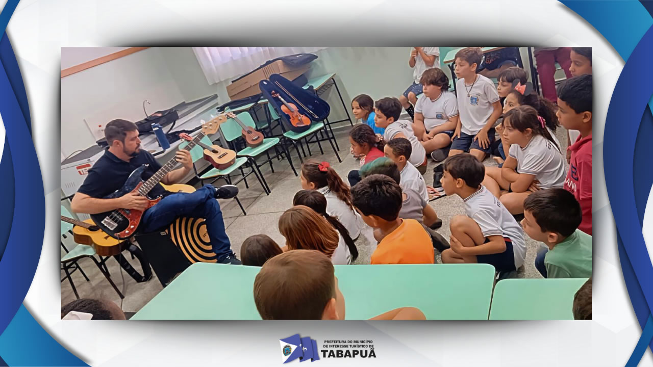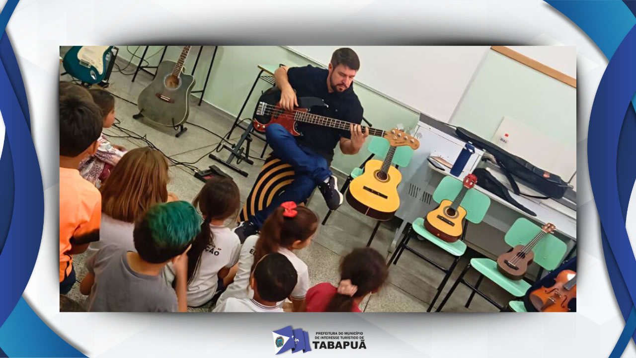 Prefeitura de Tabapuã, por meio da Secretaria Municipal de Educação, realizou uma atividade sócio-educativa com os alunos da Escola João Batista, abordando o tema “Tipos de Instrumentos de Cordas Dedilhadas”. Durante a ação, os estudantes tiveram a oportunidade de explorar o universo da música e da cultura, despertando interesse pelo aprendizado artístico.