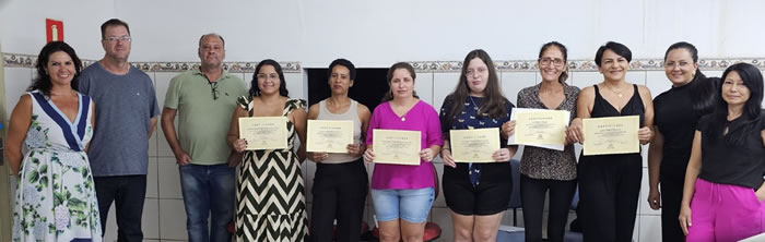 Nesta edição, seis participantes finalizaram o curso com sucesso, celebrando essa importante conquista. O evento contou com a presença da Promotora de Justiça da Comarca de Tabapuã e Presidente da ONG Dra. Bruna Maria Buck Muniz, do Presidente da Câmara Municipal, Fernando Franzotti, das orientadoras do curso, Marli e Tamires, que acompanharam de perto a evolução e dedicação dos alunos ao longo da capacitação e representante da empresa Águia.