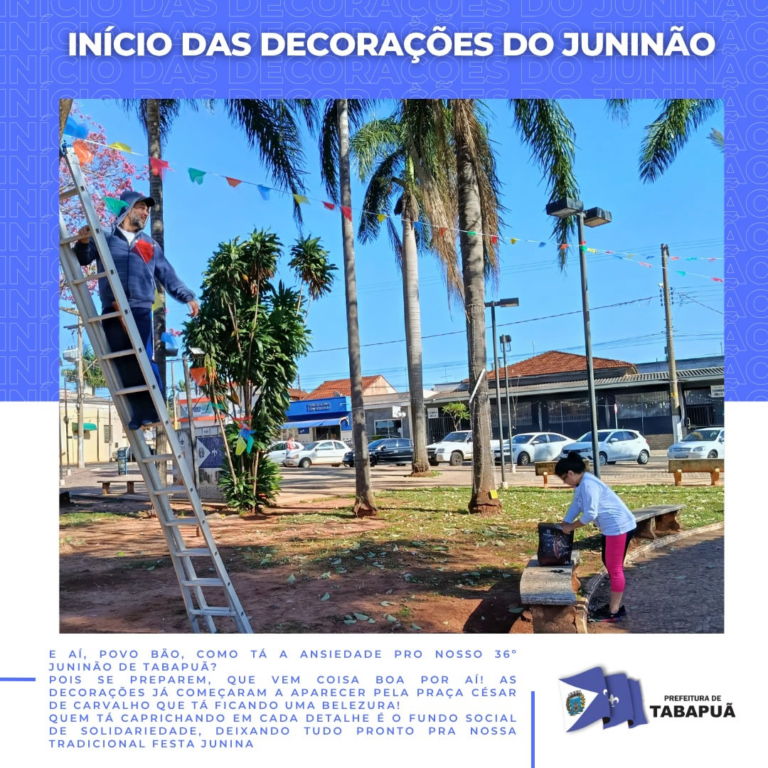 Quem tá caprichando em cada detalhe é o Fundo Social de Solidariedade, deixando tudo pronto pra nossa tradicional festa junina - bonita, acolhedora e cheia de tradição.