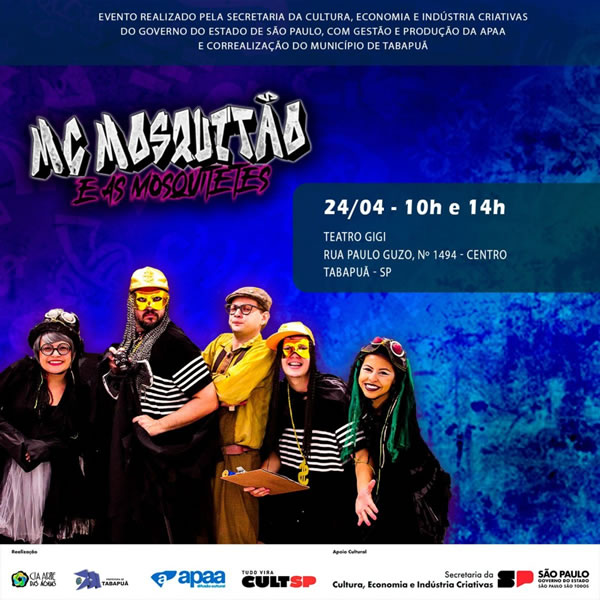 A Prefeitura Municipal de Tabapuã, em parceria com a Cia Arte das Águas e os Amigos da Arte, apresenta: