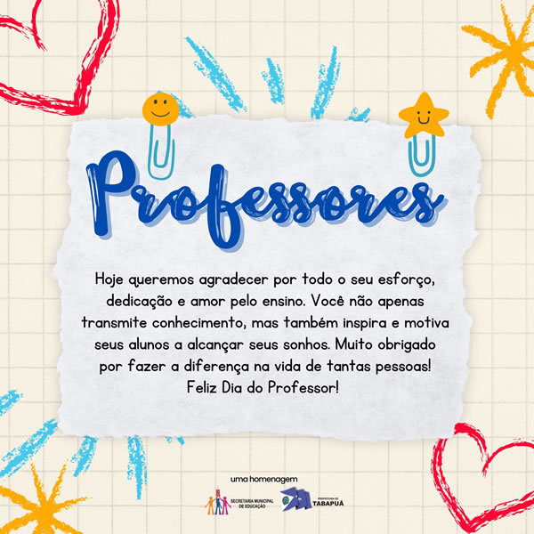 Uma homenagem da Prefeitura de Tabapuã e da Secretaria Municipal de Educação.