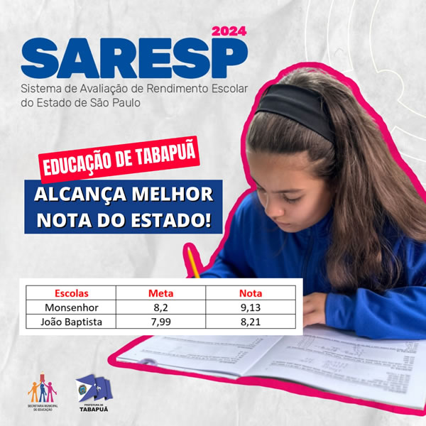 A Prefeitura e a Secretaria Municipal de Educação parabenizam os alunos, professores, funcionários, pais e a equipe gestora das Escolas João Baptista e Monsenhor João Telho pelas excelentes notas alcançadas. Na Escola João Baptista, a meta era de 7,99, e os alunos alcançaram a nota de 8,21, demonstrando grande empenho. Já na Escola Monsenhor João Telho, a meta estabelecida era de 8,2, mas o desempenho dos alunos resultou em uma nota de 9,13. Estamos orgulhosos do esforço e da dedicação de toda a comunidade escolar, que demonstraram um compromisso admirável com a educação de qualidade. Parabéns a todos por essa conquista notável!