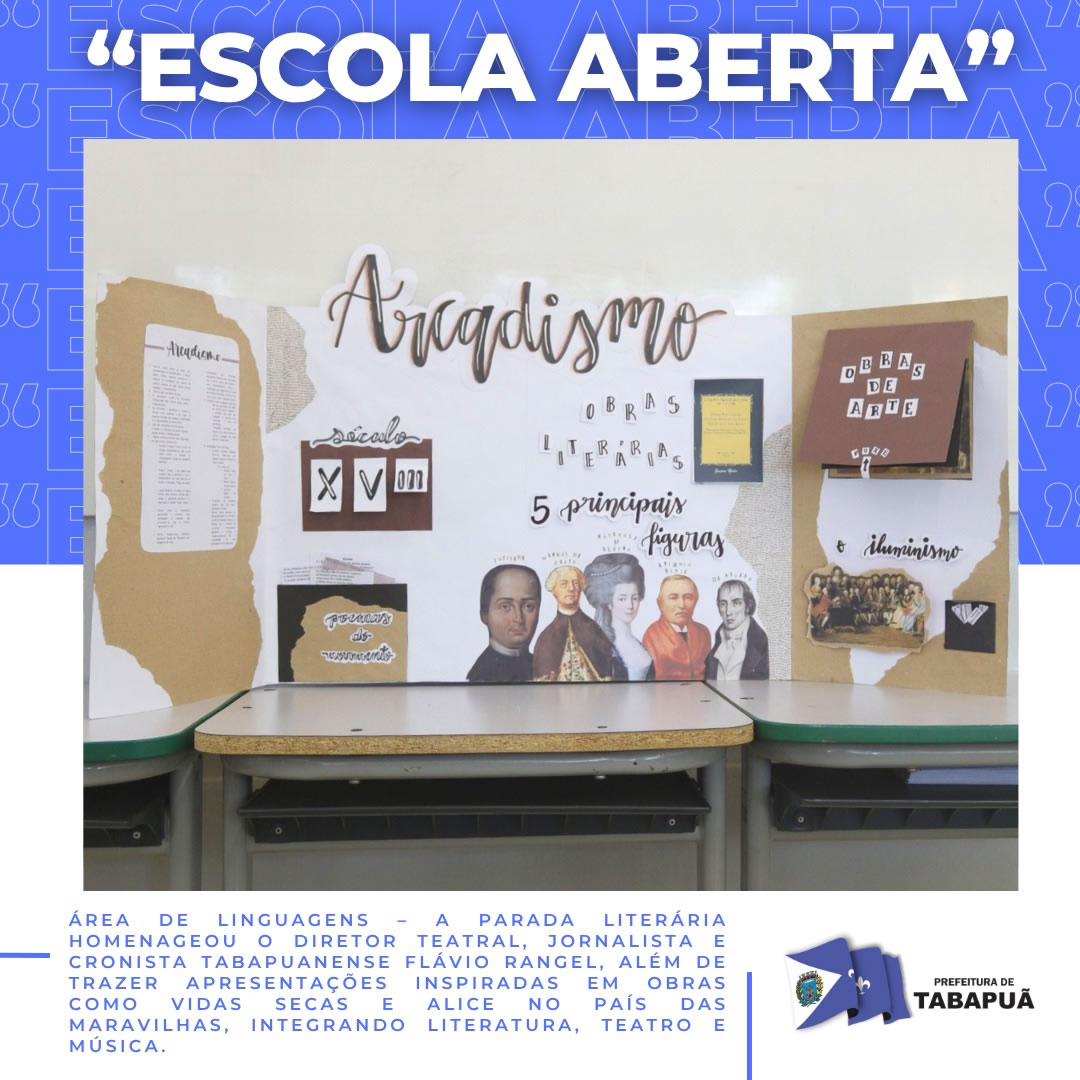 Área de Linguagens - A Parada Literária homenageou o diretor teatral, jornalista e cronista tabapuanense Flávio Rangel, além de trazer apresentações inspiradas em obras como Vidas Secas e Alice no País das Maravilhas, integrando literatura, teatro e música.