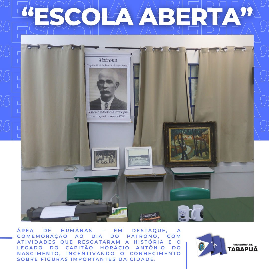 Área de Humanas - Em destaque, a comemoração ao Dia do Patrono, com atividades que resgataram a história e o legado do Capitão Horácio Antônio do Nascimento, incentivando o conhecimento sobre figuras importantes da cidade.
