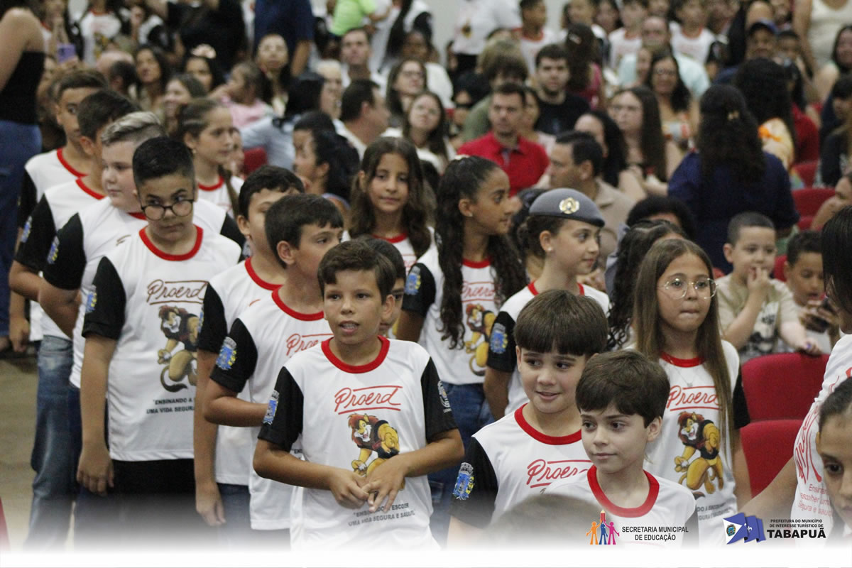 Na noite do dia 02/12, o Teatro Gigi foi palco de uma cerimônia emocionante: a formatura dos alunos dos 5º anos da E.M.E.F. “Monsenhor João Telho” e da E.M.E.F. Profº “João Baptista Spinola de Mello” pelo PROERD!