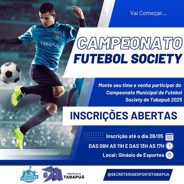 Onde se inscrever: No Conjunto Esportivo "João Batista Machado" (Ginásio de Esportes) | Das 08h às 11h e das 13h às 17h