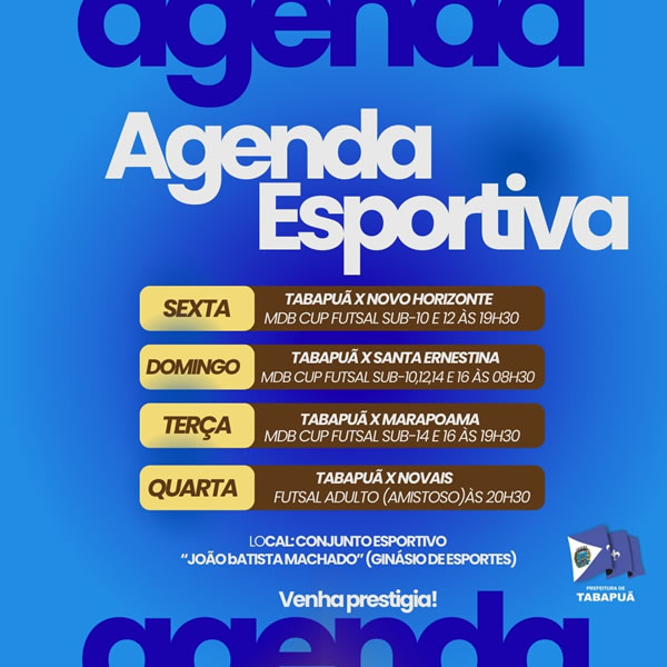 Agenda esportiva do município e os eventos realizados através da Secretaria de Esportes, Lazer e Recreação. A programação inclui competições oficiais, amistosos e atividades de base. As ações buscam fortalecer o esporte local e incentivar a participação de crianças, jovens e adultos nas diversas modalidades oferecidas pelo município.