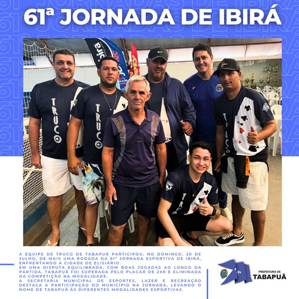 A Secretaria Municipal de Esportes, Lazer e Recreação destaca a importante participação do município na competição regional, levando o nome de Tabapuã às quadras e arenas da região.