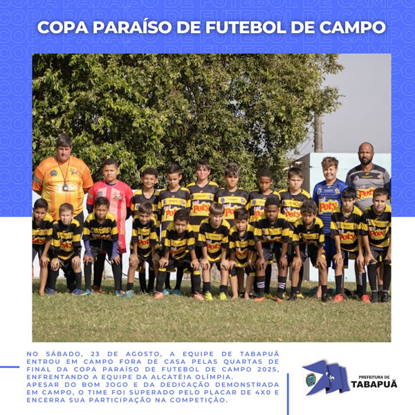No sábado, 23 de agosto, a equipe de Tabapuã entrou em campo fora de casa pelas quartas de final da Copa Paraíso de Futebol de Campo 2025, enfrentando a equipe da Alcatéia Olímpia.