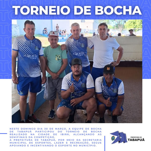 Neste domingo dia 30 de março, a equipe de Bocha de Tabapuã participou do Torneio de Bocha realizado na cidade de Ibirá, alcançando as semifinais da competição.
