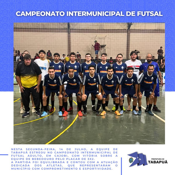Nesta segunda-feira, 14 de julho, a equipe de Tabapuã estreou no Campeonato Intermunicipal de Futsal Adulto, em Cajobi, com vitória sobre a equipe de Bebedouro pelo placar de 3x2.