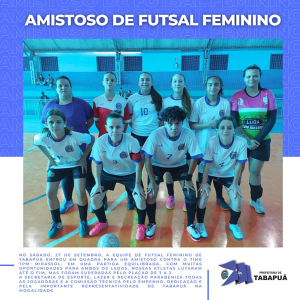 No sábado, 27 de setembro, a equipe de futsal feminino de Tabapuã entrou em quadra para um amistoso contra o time TPM Mirassol. Em uma partida equilibrada, com muitas oportunidades para ambos os lados, nossas atletas lutaram até o fim, mas foram superadas pelo placar de 3 a 2.
