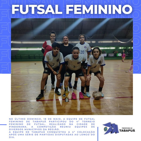 No último domingo, 18 de maio, a equipe de futsal feminino de Tabapuã participou do 4º Torneio Feminino de Futsal, realizado na cidade de Pindorama. A competição reuniu equipes de diversos municípios da região.
