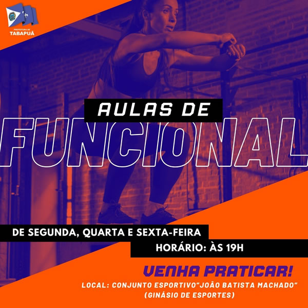 Nesta segunda-feira (10), começaram as aulas de Funcional às 19h no Conjunto Esportivo "João Batista Machado" (Ginásio de Esportes). As aulas acontecem às segundas, quartas e sextas-feiras e são voltadas para o público feminino a partir de 15 anos.