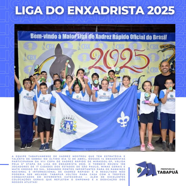 A equipe tabapuanense de xadrez mostrou que tem estratégia e talento de sobra! No último dia 12 de abril, nossos 14 enxadristas participaram da VIII Copa de Xadrez Rápido de Mirassol-SP, válida pela 6ª etapa da Liga do Enxadrista 2025.