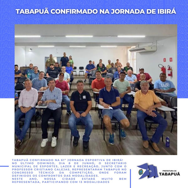 No último domingo, dia 8 de junho, o Secretário Municipal de Esportes, Lazer e Recreação, junto com o professor Cristiano Calejas, representaram Tabapuã no congresso técnico da competição, onde foram definidos os confrontos das modalidades.