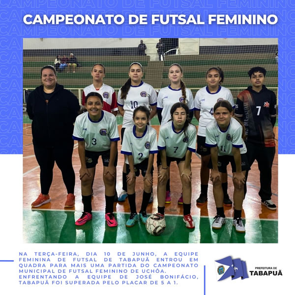 Na terça-feira, dia 10 de junho, a equipe feminina de futsal de Tabapuã entrou em quadra para mais uma partida do Campeonato Municipal de Futsal Feminino de Uchôa.