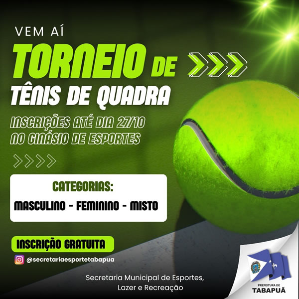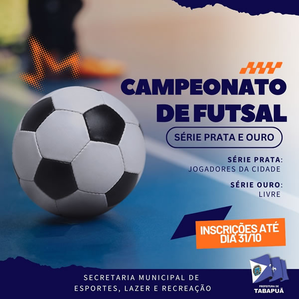 No sábado, dia 18 de outubro, a partir das 8h, o Conjunto Esportivo “João Batista Machado” (Ginásio de Esportes) recebe os jogos amistosos de futsal entre as categorias Sub-08, Sub-10, Sub-13, Sub-14 e Sub-16, envolvendo as equipes de Tabapuã e Paraíso.