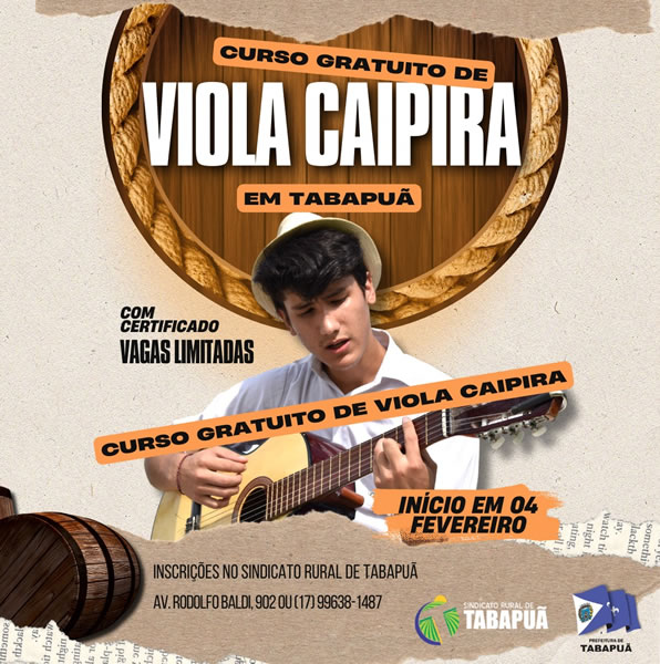O Sindicato Rural de Tabapuã, em parceria com o SENAR e a FAESP, está oferecendo vagas para o Curso de Viola Caipira!