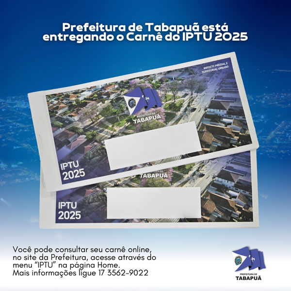 Os carnês do IPTU (Imposto Predial e Territorial Urbano) 2025 estão sendo entregues aos contribuintes de Tabapuã.