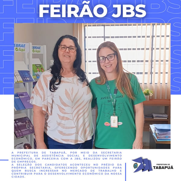 A Prefeitura de Tabapuã, por meio da Secretaria Municipal de Assistência Social e Desenvolvimento Econômico, em parceria com a JBS, realizou um Feirão de Empregos.