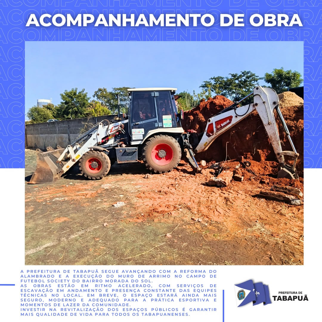 As obras estão em ritmo acelerado, com serviços de escavação em andamento e presença constante das equipes técnicas no local. Em breve, o espaço estará ainda mais seguro, moderno e adequado para a prática esportiva e momentos de lazer da comunidade.