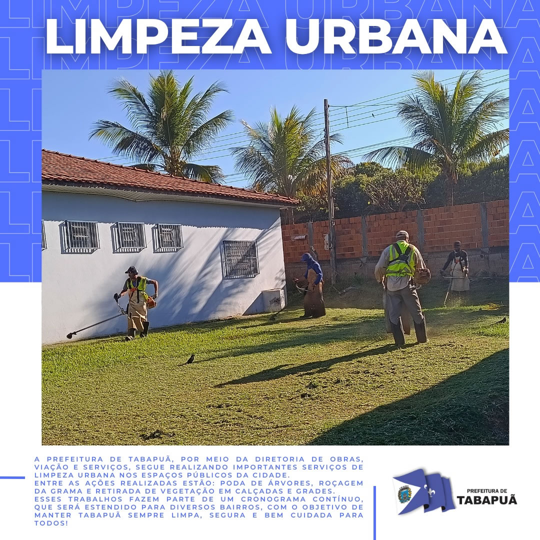 A Prefeitura de Tabapuã, por meio da Diretoria de Obras, Viação e Serviços, segue realizando serviços de limpeza urbana nos espaços públicos da cidade.