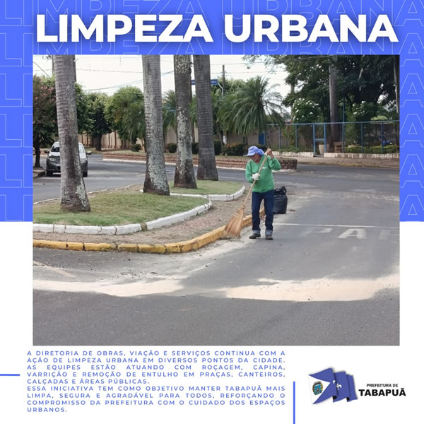 Essa iniciativa tem como objetivo manter Tabapuã mais limpa, segura e agradável para todos, reforçando o compromisso da Prefeitura com o cuidado dos espaços urbanos.