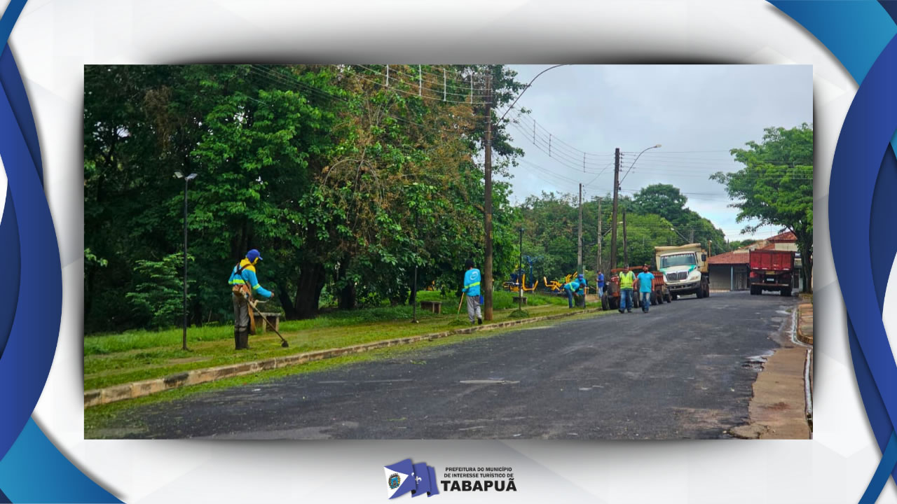 Os trabalhos incluem varrição, roçagem, remoção de resíduos e manutenção geral dos espaços públicos, garantindo mais organização e bem-estar para a população.