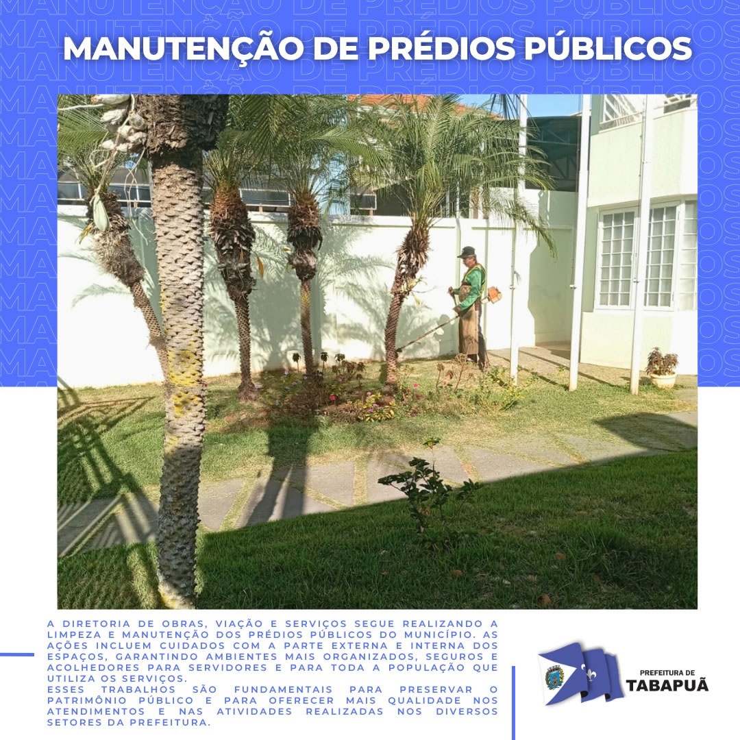 A Diretoria de Obras, Viação e Serviços segue realizando a limpeza e manutenção dos prédios públicos do município. As ações incluem cuidados com a parte externa e interna dos espaços, garantindo ambientes mais organizados, seguros e acolhedores para servidores e para toda a população que utiliza os serviços.