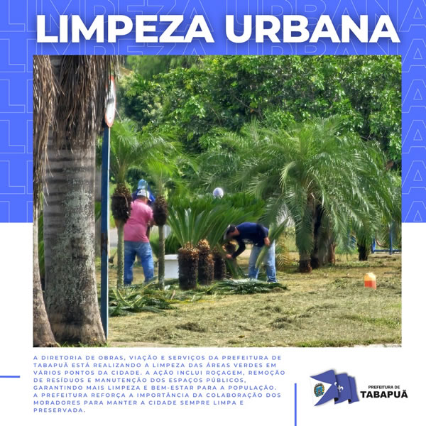 A Diretoria de Obras, viação e Serviços da Prefeitura de Tabapuã está realizando a limpeza das áreas verdes em vários pontos da cidade. A ação inclui roçagem, remoção de resíduos e manutenção dos espaços públicos, garantindo mais limpeza e bem-estar para a população.