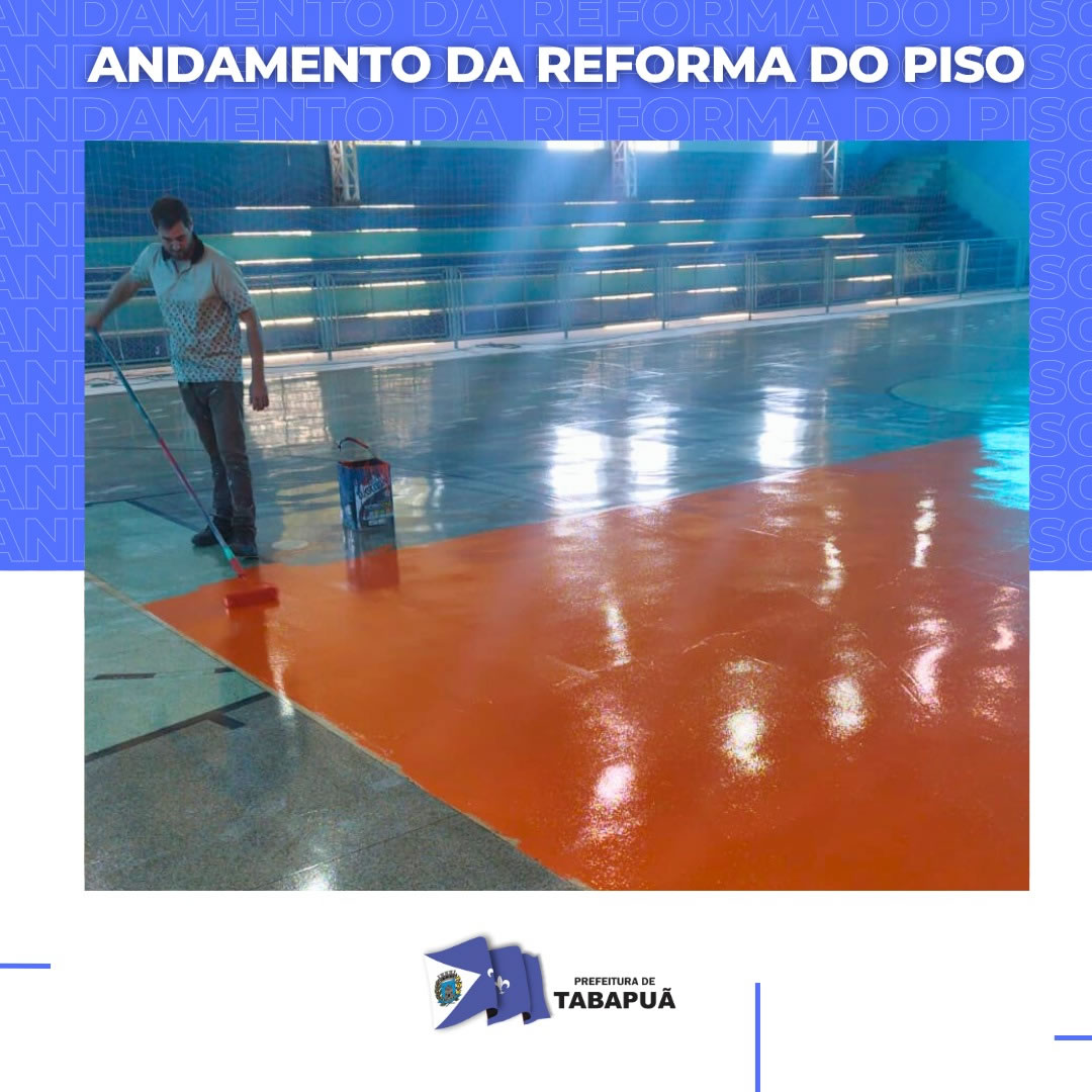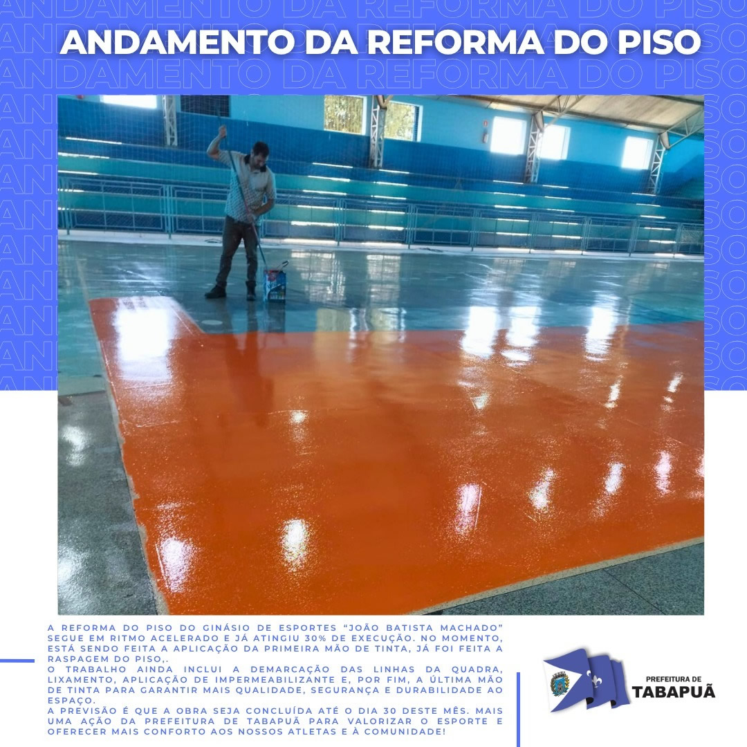 A reforma do piso do Ginásio de Esportes “João Batista Machado” segue em ritmo acelerado e já atingiu 30% de execução. No momento, está sendo feita a aplicação da primeira mão de tinta, já foi feita a raspagem do piso,.