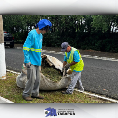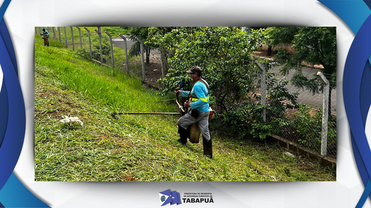 Com o período de fortes chuvas, a Prefeitura de Tabapuã, por meio da equipe de Limpeza Urbana, está intensificando os trabalhos de roçagem e limpeza em diversos pontos da cidade.