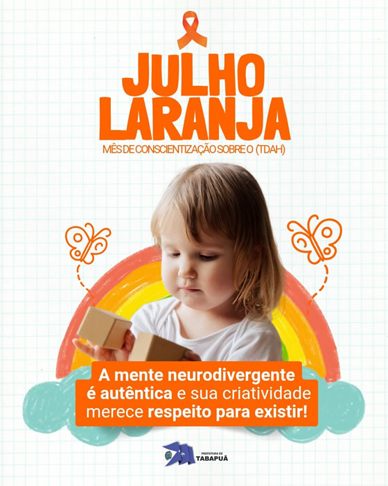 A Prefeitura de Tabapuã reforça a importância da informação e do acolhimento neste Dia Mundial de Conscientização sobre o Transtorno de Déficit de Atenção e Hiperatividade (TDAH).