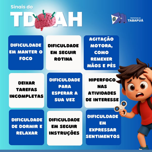 A Prefeitura de Tabapuã segue com a campanha de conscientização até o Dia Mundial do TDAH - 13 de julho. Informação é o primeiro passo para acolher, tratar e transformar vidas.