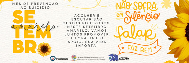 Neste mês, lembramos que “não sofra em silêncio, falar faz bem”. Conversar sobre sentimentos, procurar apoio e dividir angústias são passos fundamentais para enfrentar momentos difíceis. Promover empatia e solidariedade é uma responsabilidade de todos nós. Afinal, a sua vida importa!