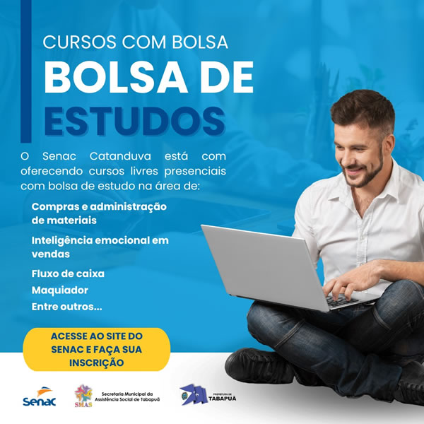 A Secretaria Municipal de Assistência Social informa que o Senac Catanduva está oferecendo cursos livres presenciais com bolsa de estudo em diversas áreas.