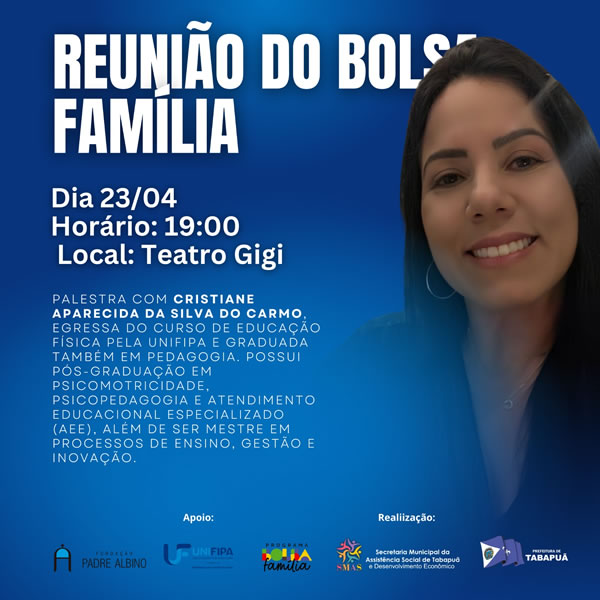 Realização da Secretaria Municipal de Assistência Social e Desenvolvimento Econômico de Tabapuã e Prefeitura de Tabapuã.