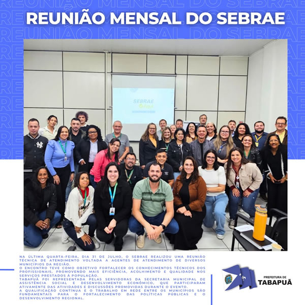 Na última quarta-feira, dia 31 de julho, o SEBRAE realizou uma Reunião Técnica de Atendimento voltada a agentes de atendimento de diversos municípios da região.
