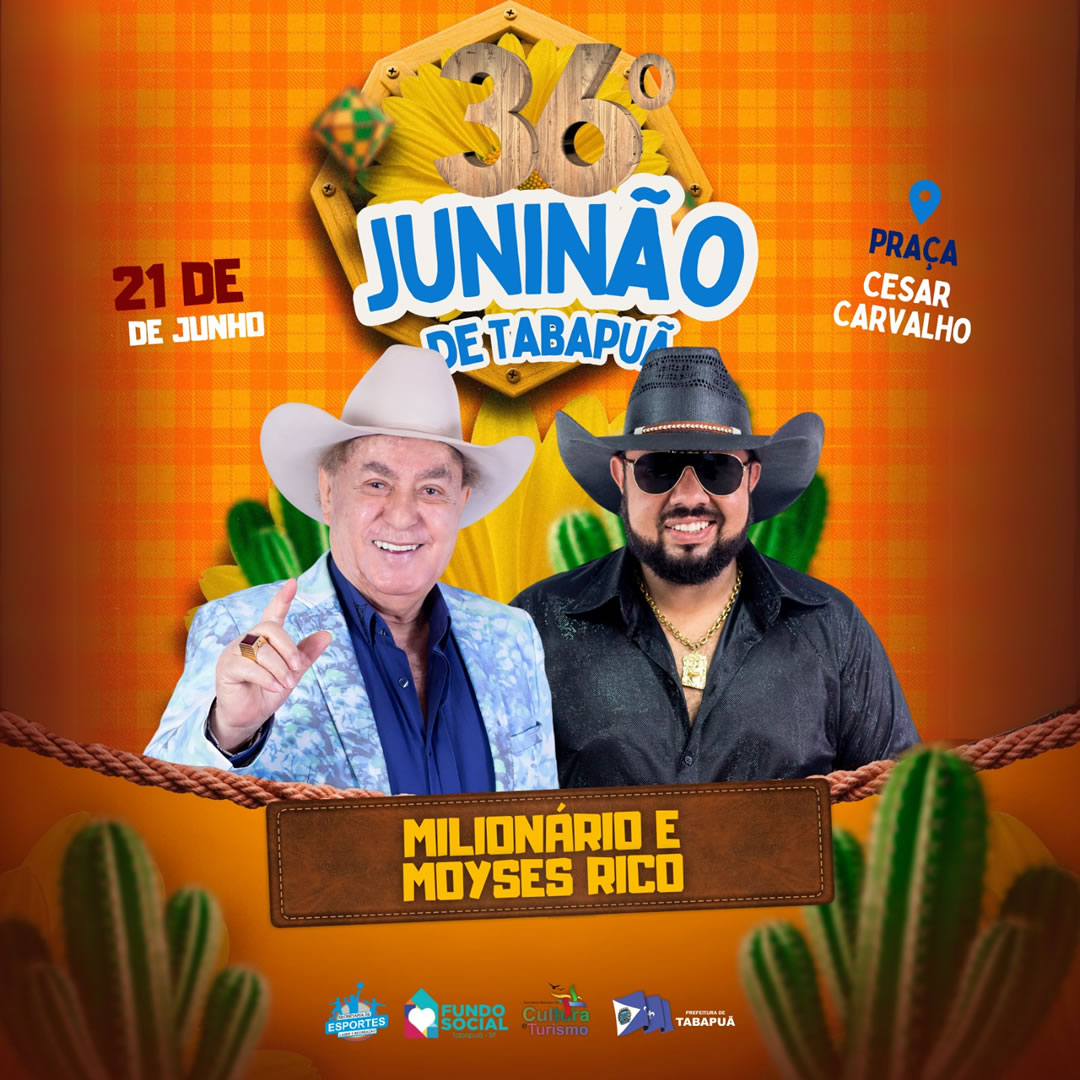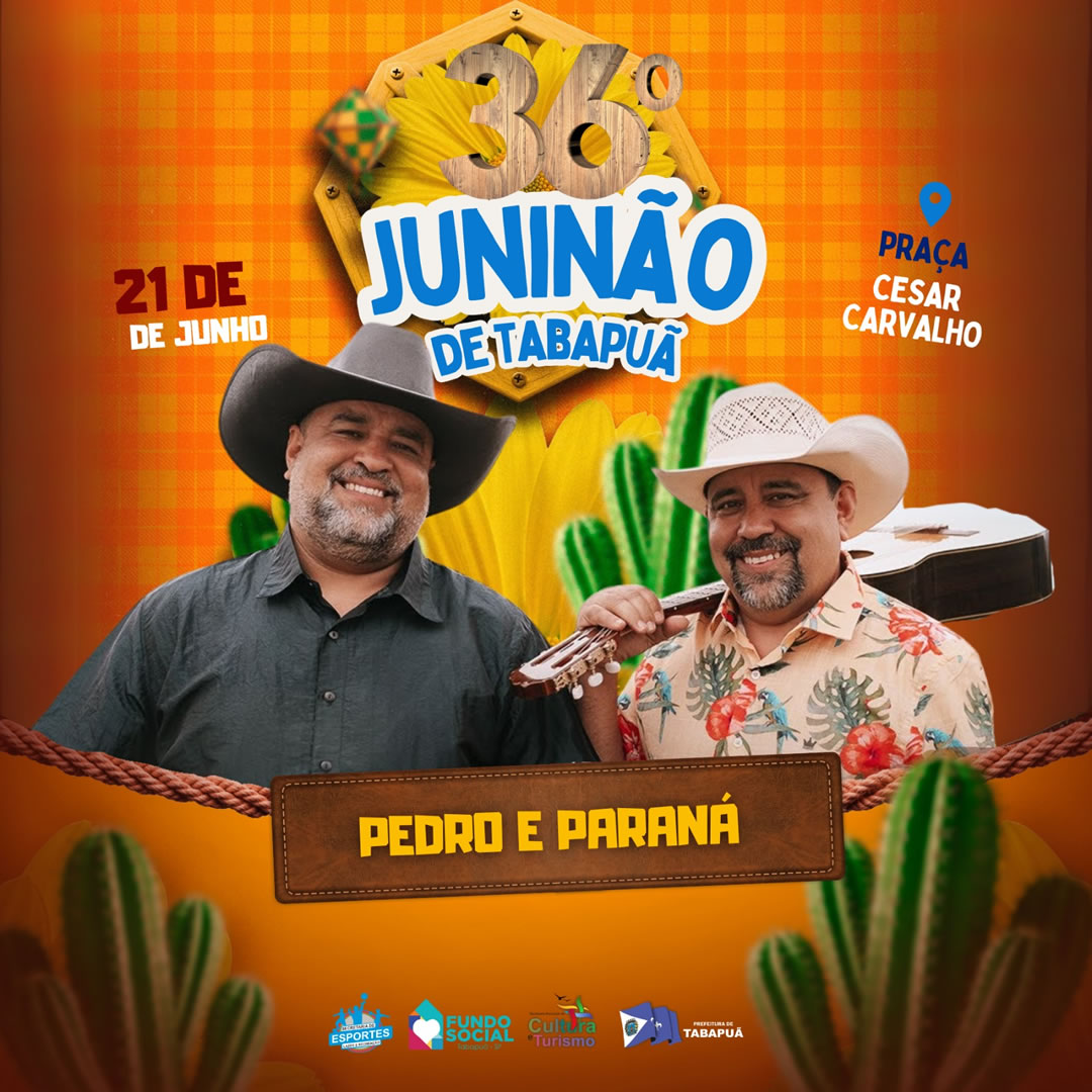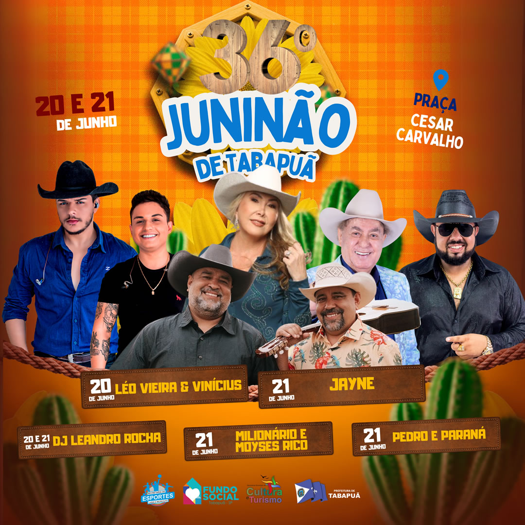 Ô trem bão, sô! Tá chegando o 36º Juninão de Tabapuã e nóis tamo que não se aguenta de ansiedade! Prepara o chapéu, a bota e a vontade de prosear, porque nos dias 20 e 21 de junho, a Praça César Carvalho vai ferver de tanta animação!