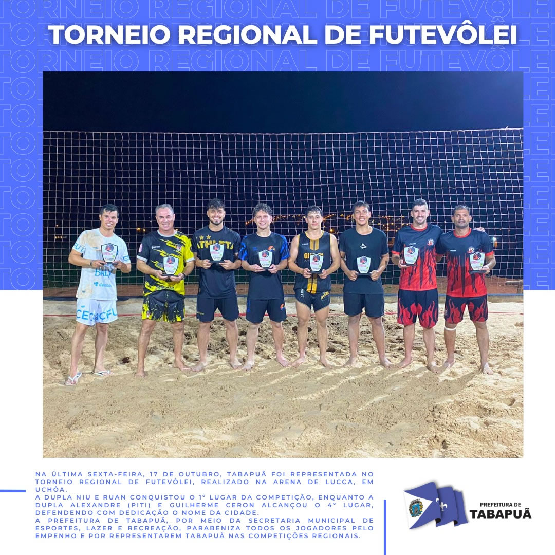 Na última sexta-feira, 17 de outubro, Tabapuã foi representada no Torneio Regional de Futevôlei, realizado na Arena De Lucca, em Uchôa.