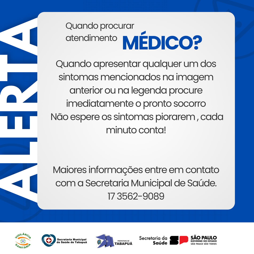 A Prefeitura de Tabapuã, por meio da Secretaria Municipal de Saúde, em conjunto com a Secretaria de Estado da Saúde de São Paulo e o Governo do Estado de São Paulo, alerta toda a população: