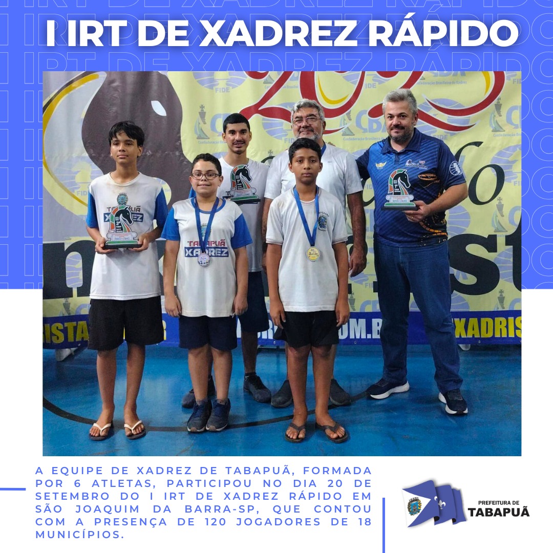 A equipe de xadrez de Tabapuã, formada por 6 atletas, participou no dia 20 de setembro do I IRT de Xadrez Rápido em São Joaquim da Barra-SP, que contou com a presença de 120 jogadores de 18 municípios.
