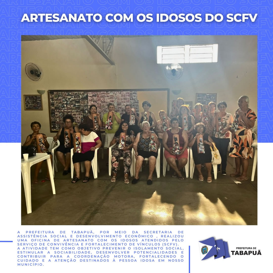 A Prefeitura de Tabapuã, por meio da Secretaria de Assistência Social e Desenvolvimento Econômico, realizou uma oficina de artesanato com os idosos atendidos pelo Serviço de Convivência e Fortalecimento de Vínculos (SCFV).