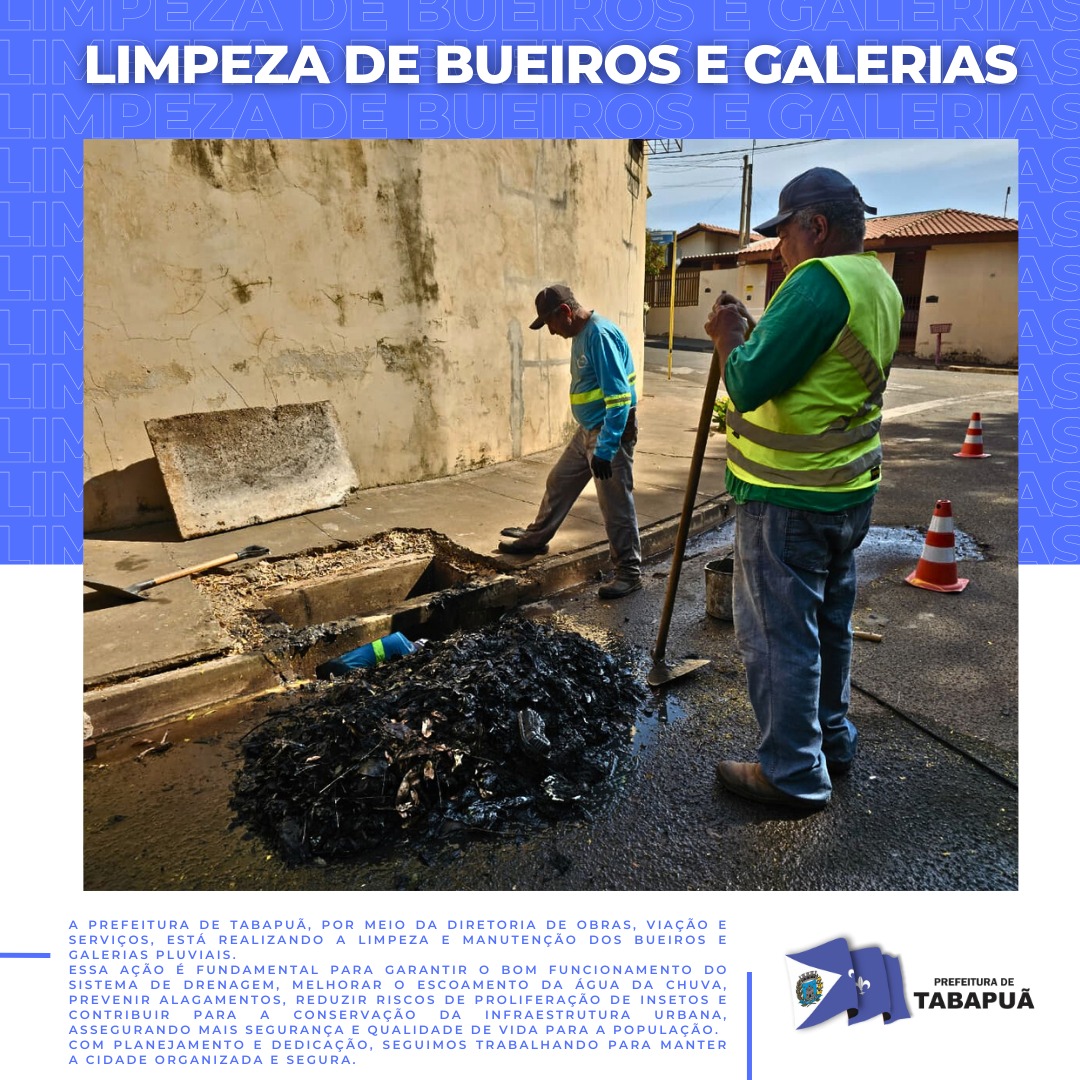 A Prefeitura de Tabapuã, por meio da Diretoria de Obras, Viação e Serviços, está realizando a limpeza e manutenção dos bueiros e galerias pluviais.