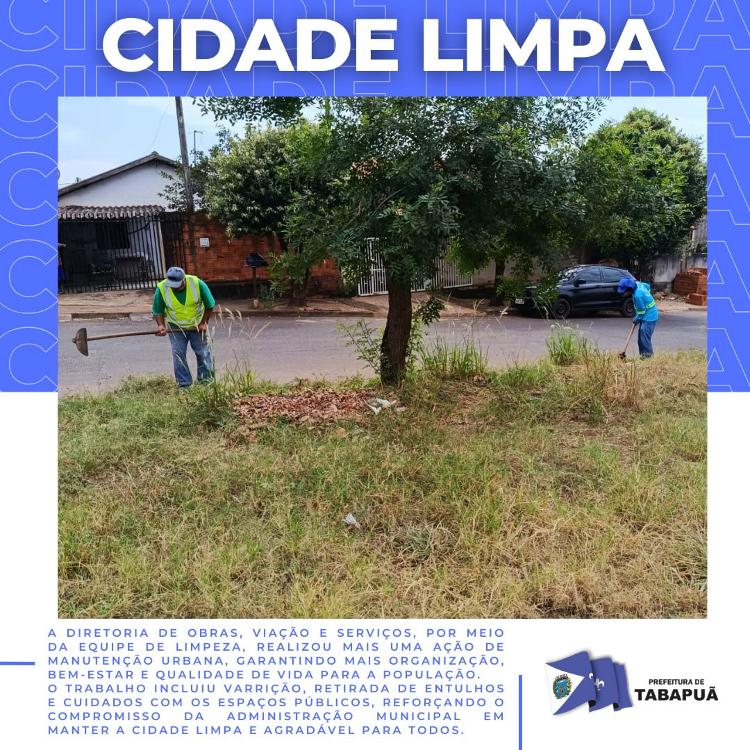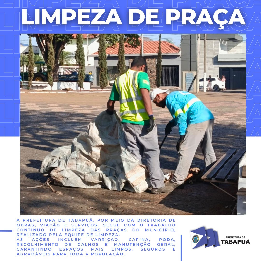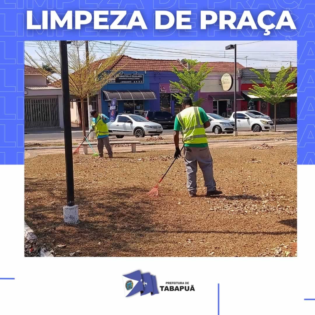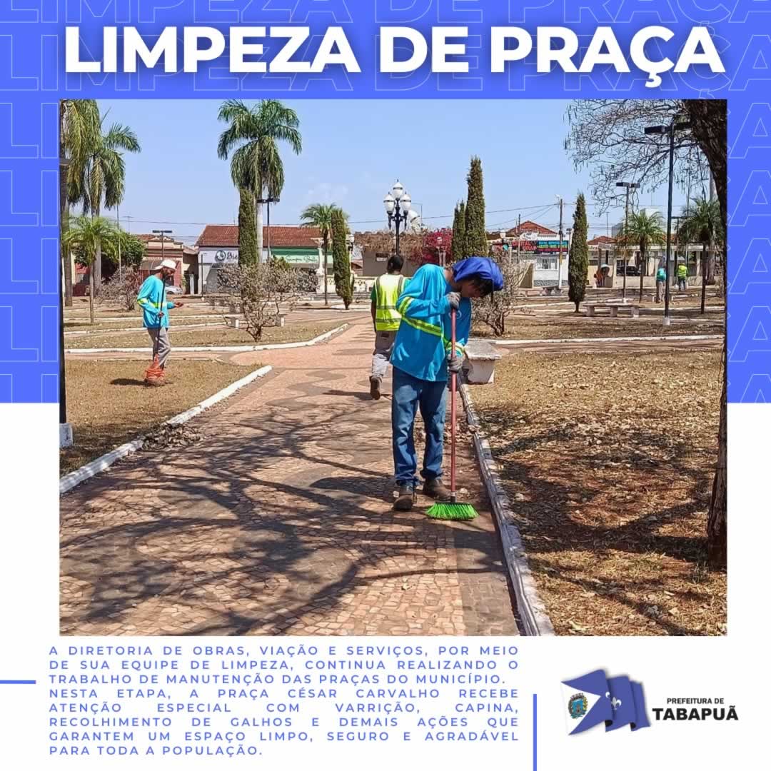 Nesta etapa, a Praça César Carvalho recebe atenção especial com varrição, capina, recolhimento de galhos e demais ações que garantem um espaço limpo, seguro e agradável para toda a população.