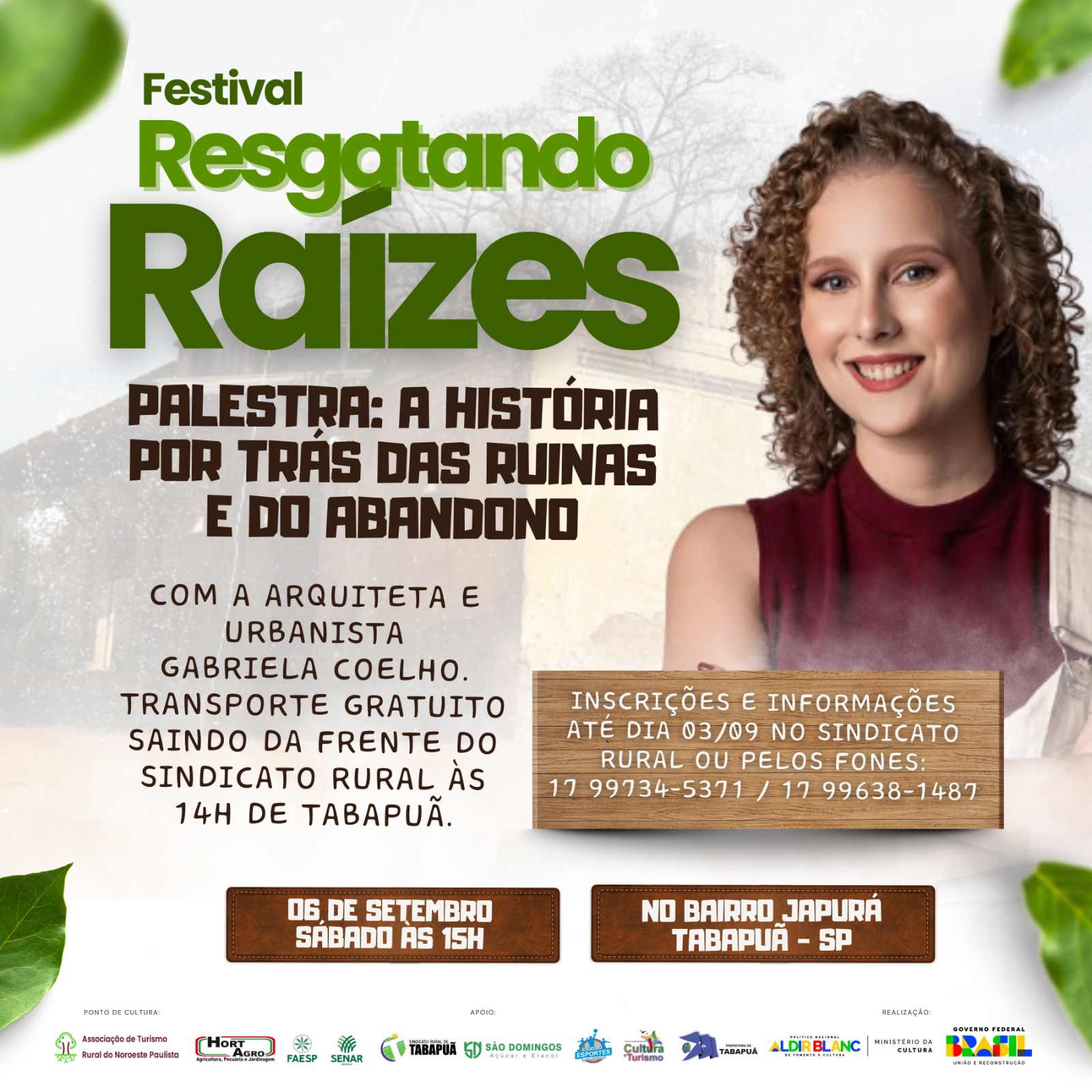 Prepare-se para um dia cheio de história, cultura e atividades ao ar livre! Nos dias 06 e 07 de setembro, o Bairro Japurá em Tabapuã será palco do Festival Resgatando Raízes, com atrações para toda a família: