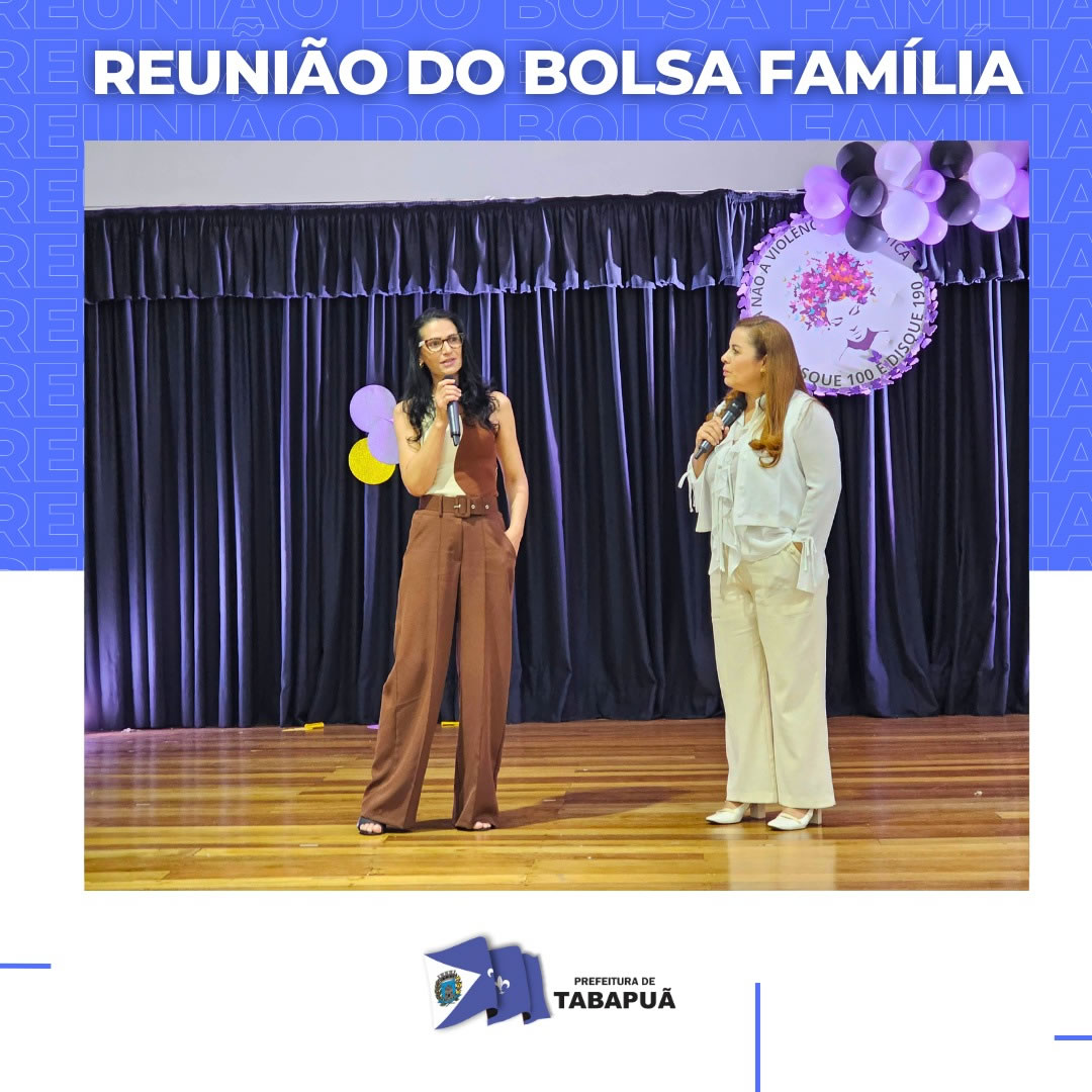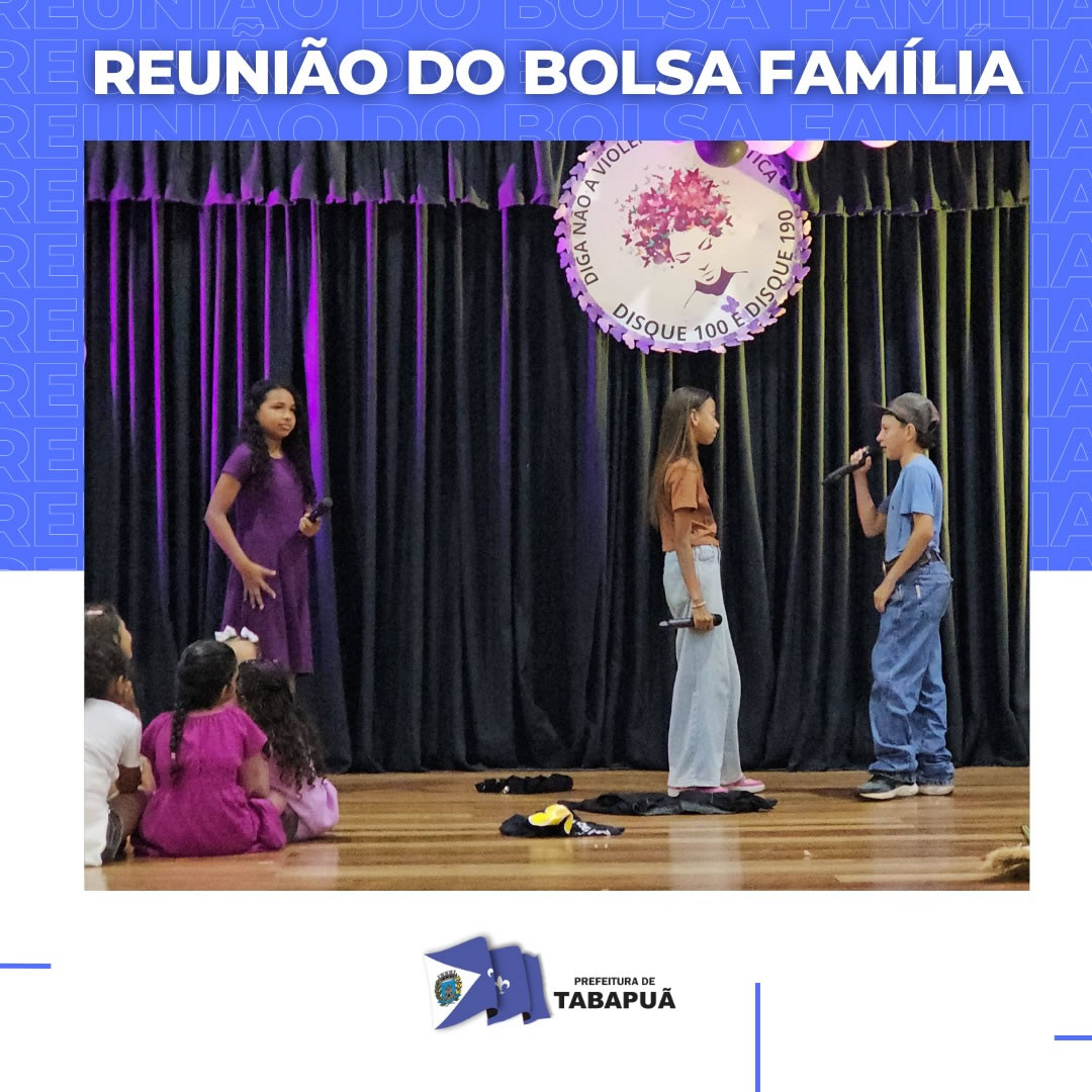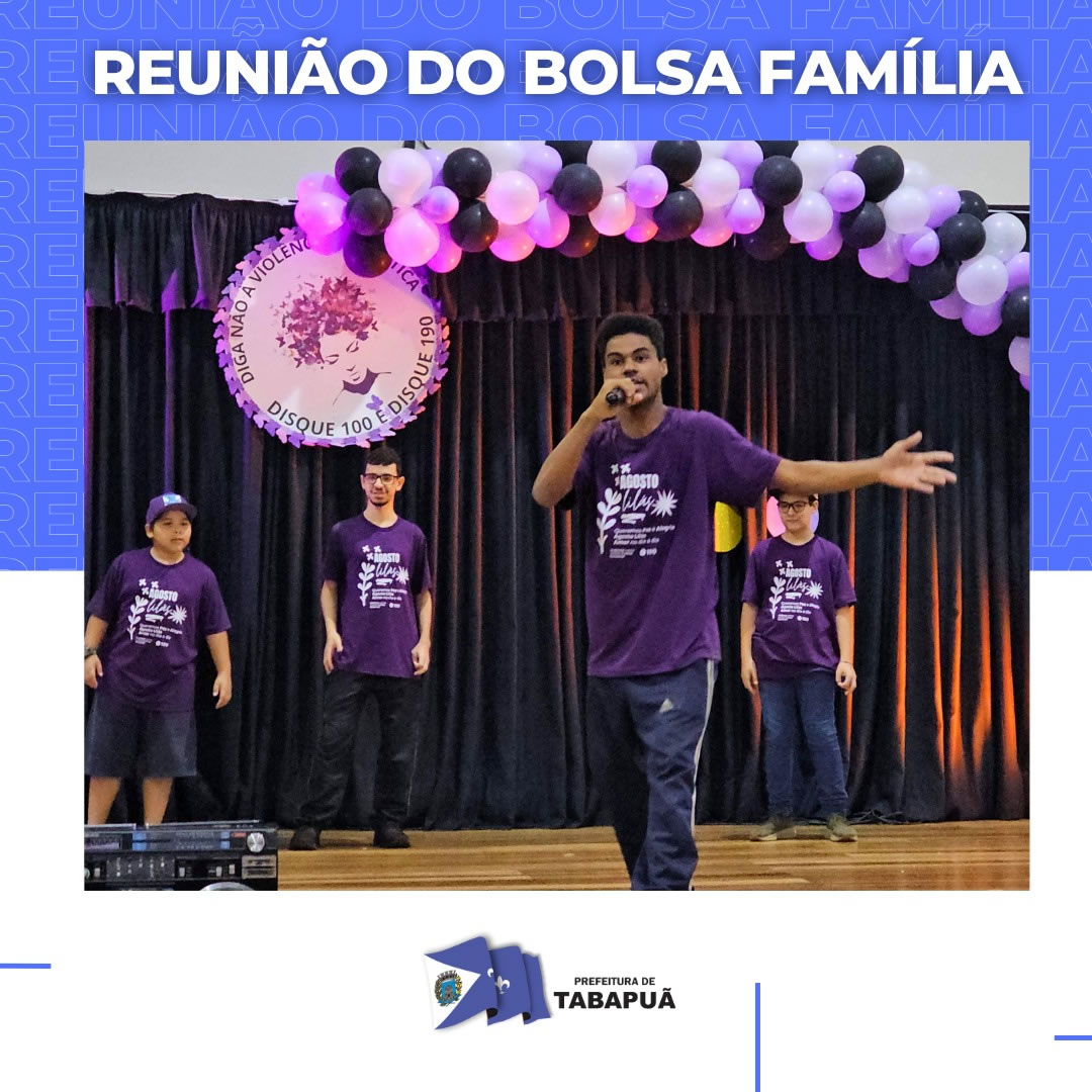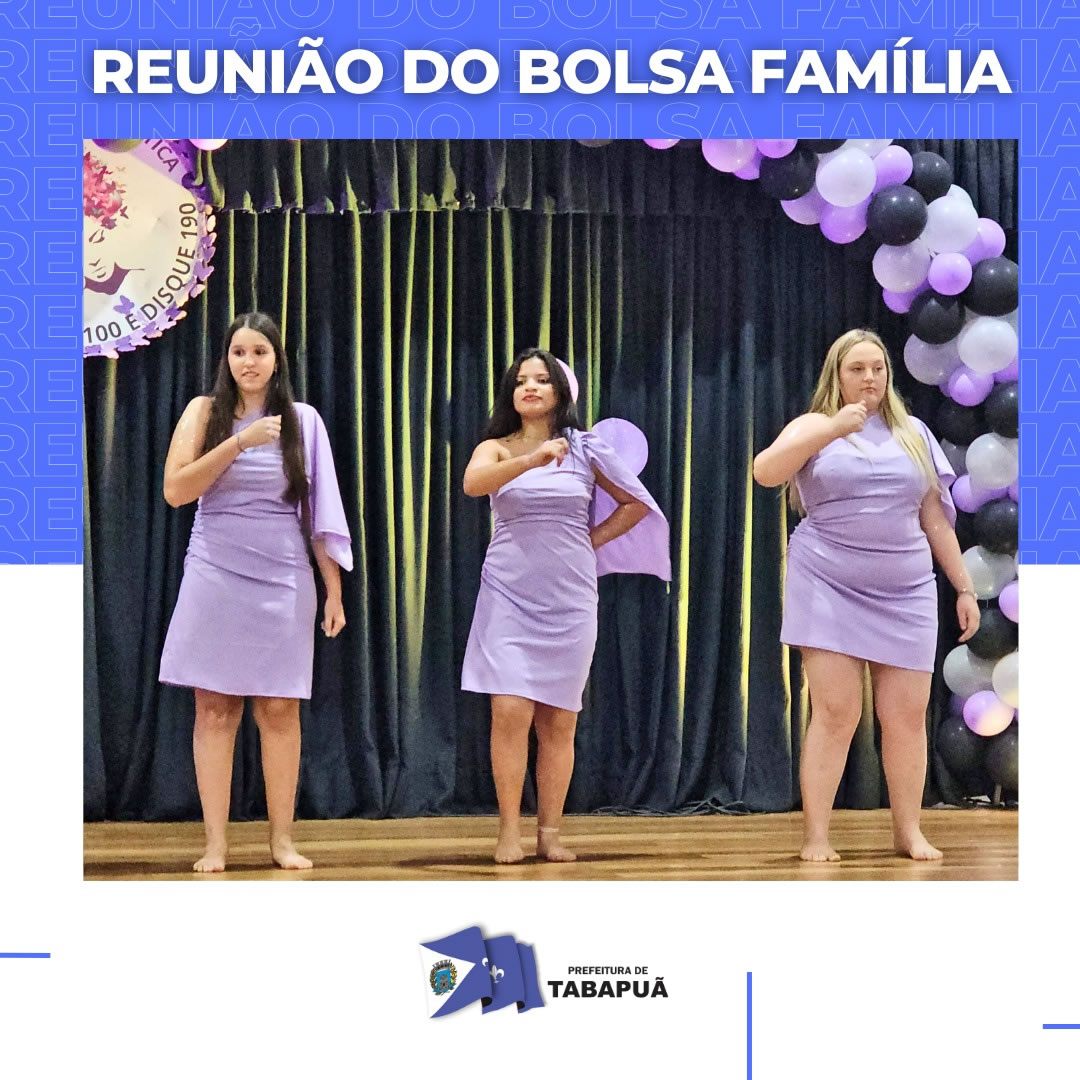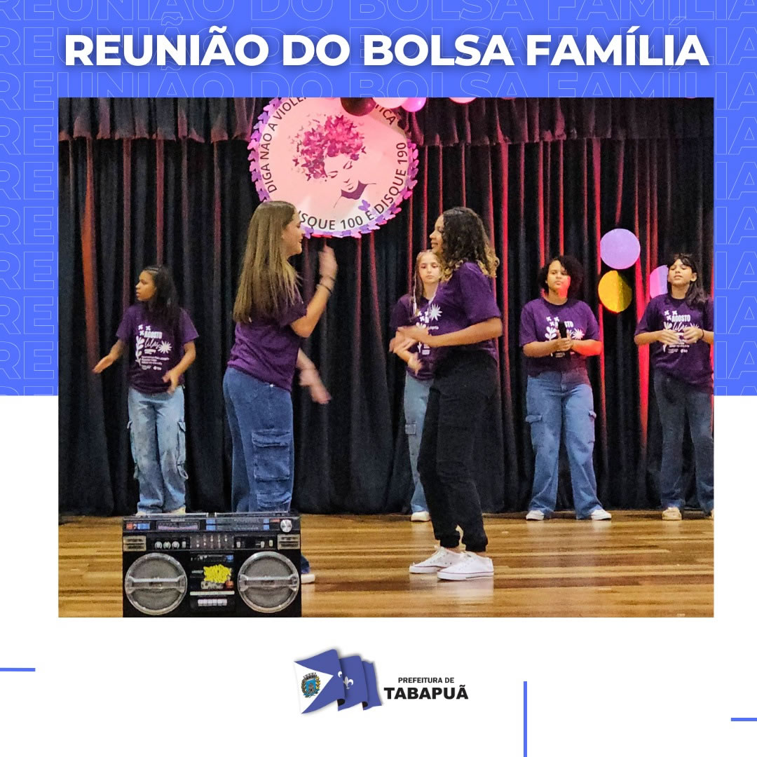 A Prefeitura de Tabapuã, por meio da Secretaria Municipal de Assistência Social e Desenvolvimento Econômico, realizou mais uma reunião do Programa Bolsa Família no Teatro Gigi, que contou com a participação de 159 beneficiários. A programação incluiu apresentações dos projetos do SCFV - Serviço de Convivência e Fortalecimento de Vínculos, com crianças e adolescentes abordando o tema Agosto Lilás, além de uma palestra especial voltada à conscientização sobre a importância do enfrentamento à violência contra a mulher.