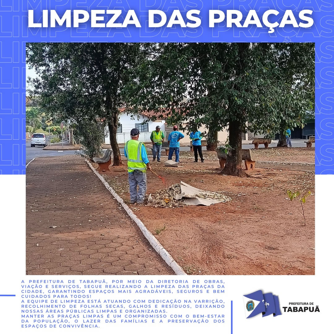 A Prefeitura de Tabapuã, por meio da Diretoria de Obras, Viação e Serviços, segue realizando a limpeza das praças da cidade, garantindo espaços mais agradáveis, seguros e bem cuidados para todos!